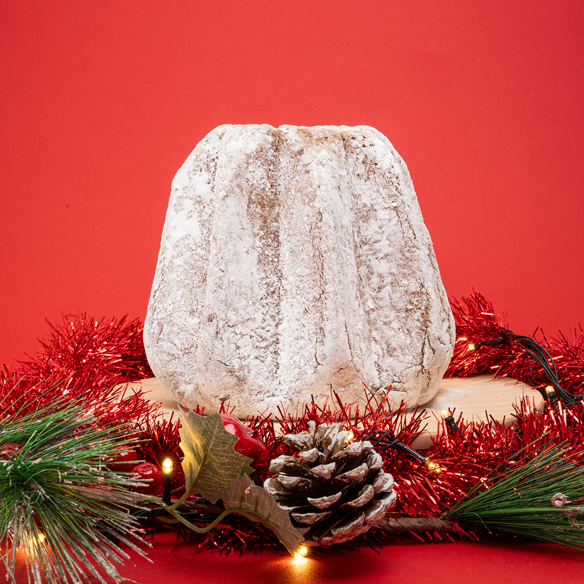 La sua forma è quella classica del pandoro veronese: elegante, alta e perfettamente dorata, un omaggio autentico alla ricetta originale.